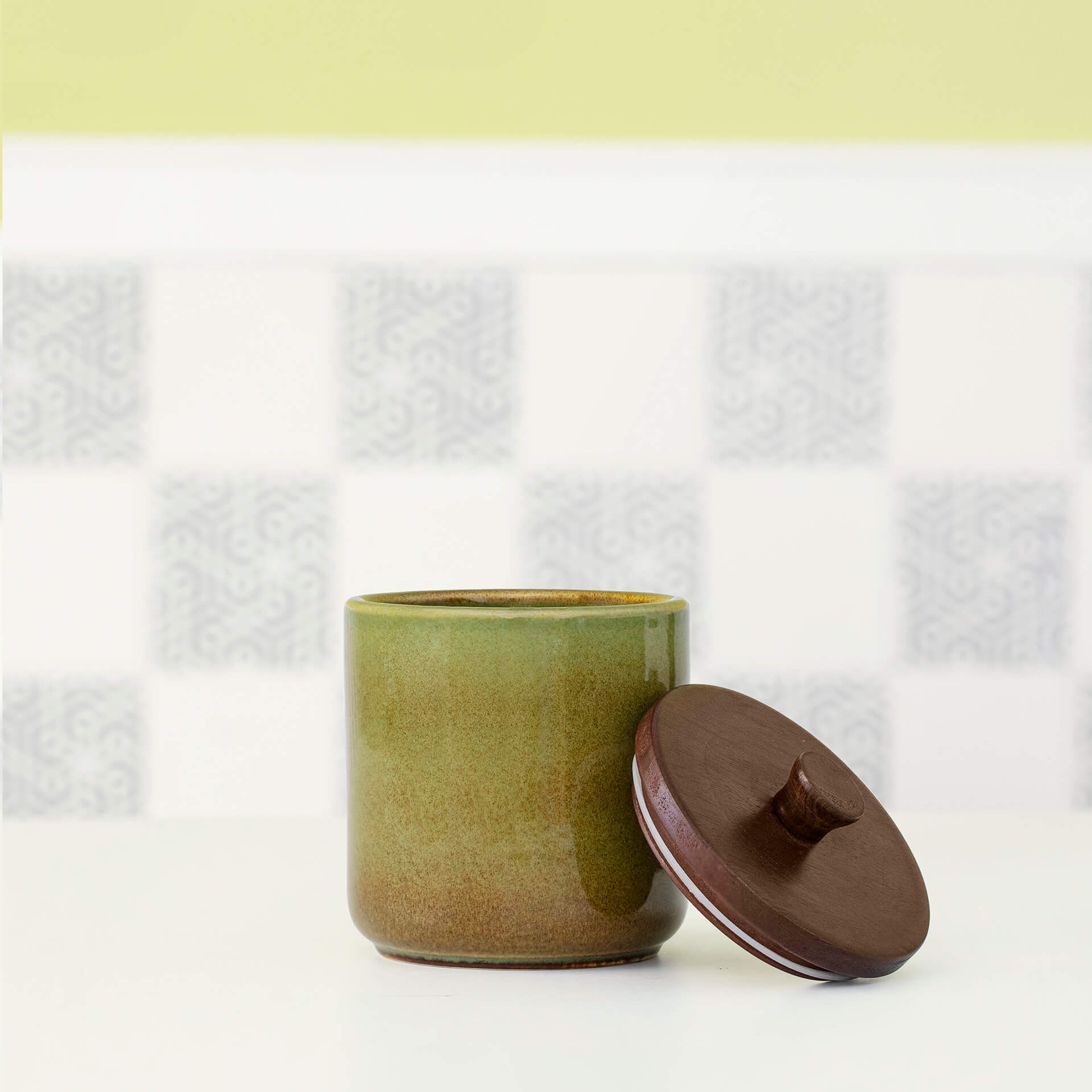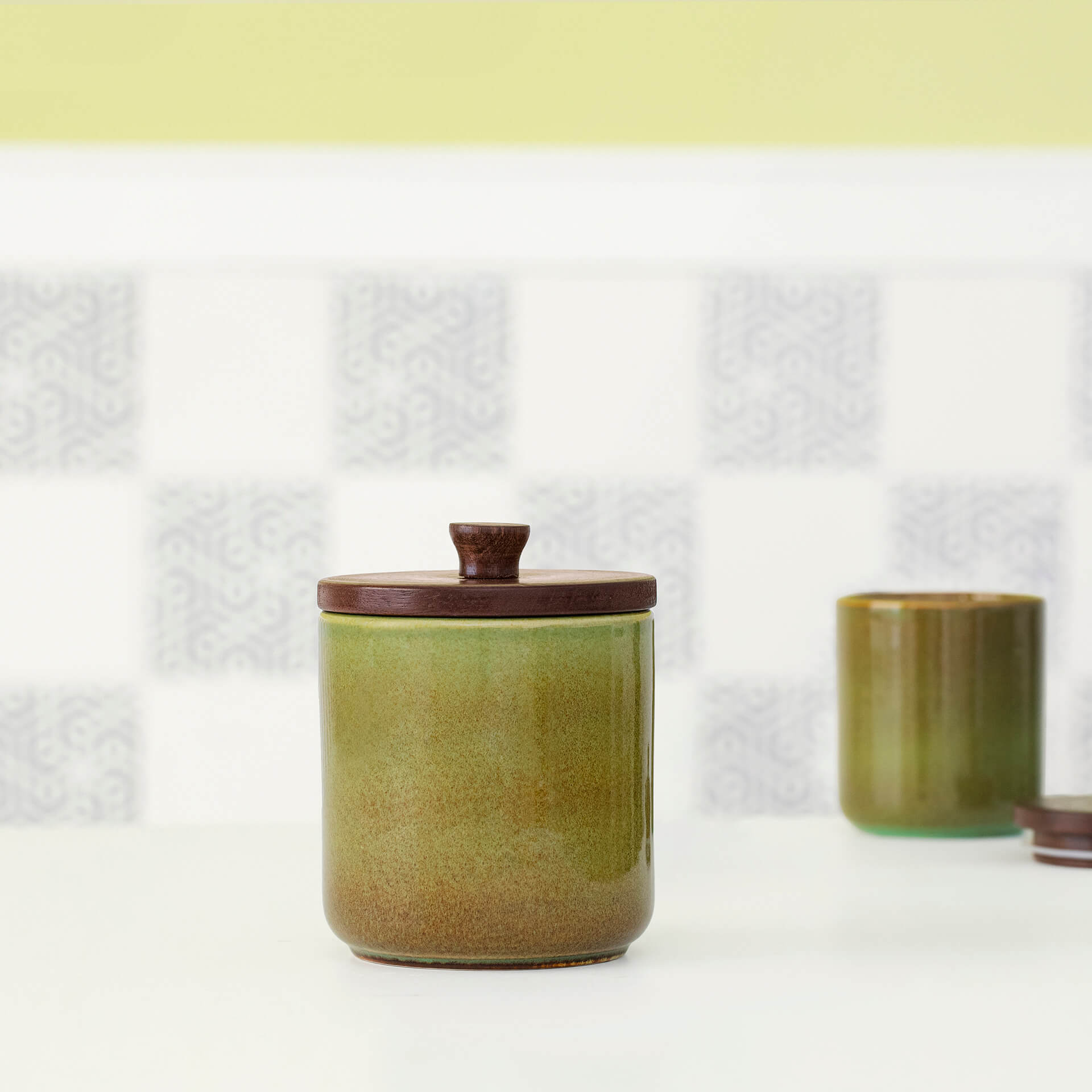 Rustic Sage Ceramic Jar with Wooden Lid (Small) – SWKEA2343